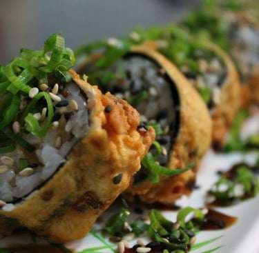 O equilíbrio ideal entre o frescor dos sashimis variados e a crocância dos hot rolls